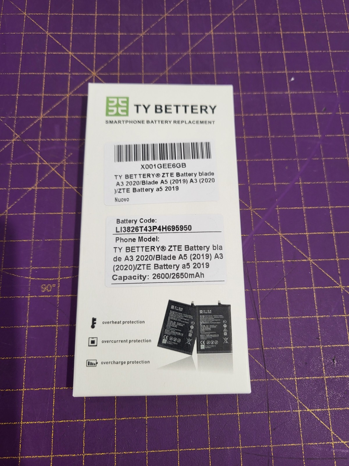 🧩Batteriecode: LI3826T43P4H695950. Derneue TY BETTERY® Akku bietet zuverlässige Leistung und langanhaltende Energie – ideal als Ersatz- oder Zweitakku für Ihr ZTE Blade A3 2020 oder A5 (2019). TY BETTERY® Akku für ZTE Blade A3 2020 / Blade A5 (2019) – 2600/2650 mAh Ersatzbatterie 🔋.