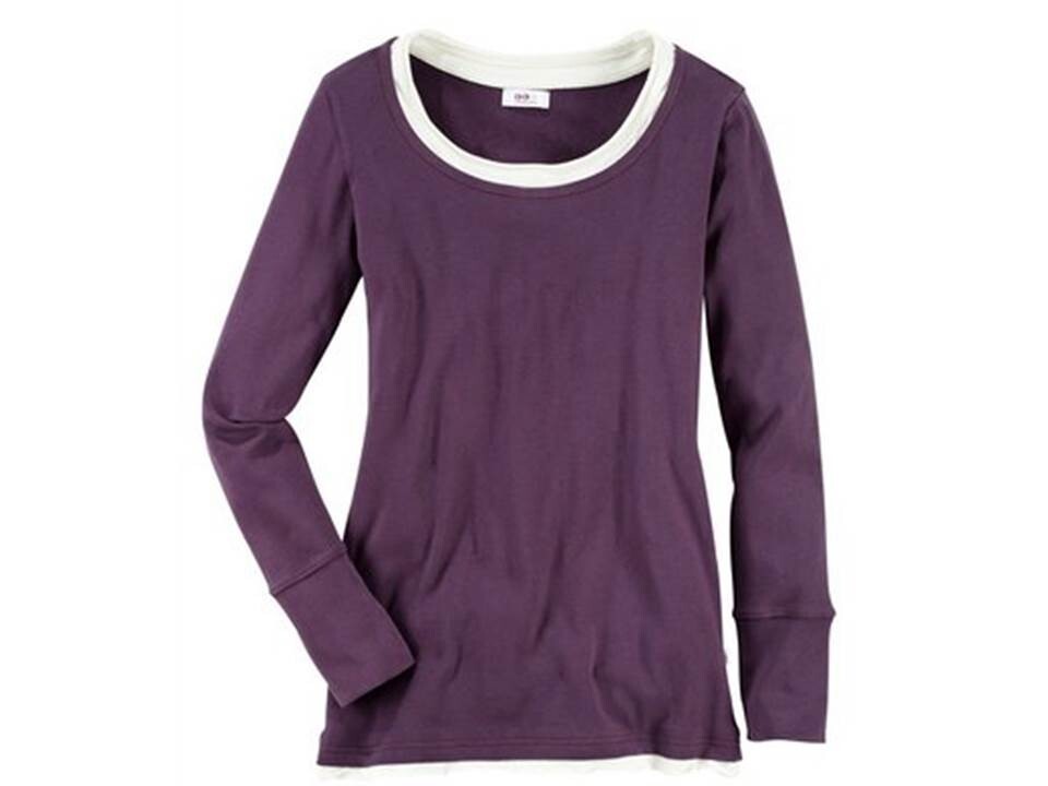 flashlights Damen Shirt Langarm Doppeloptik aubergine/creme Gr. 32/34
