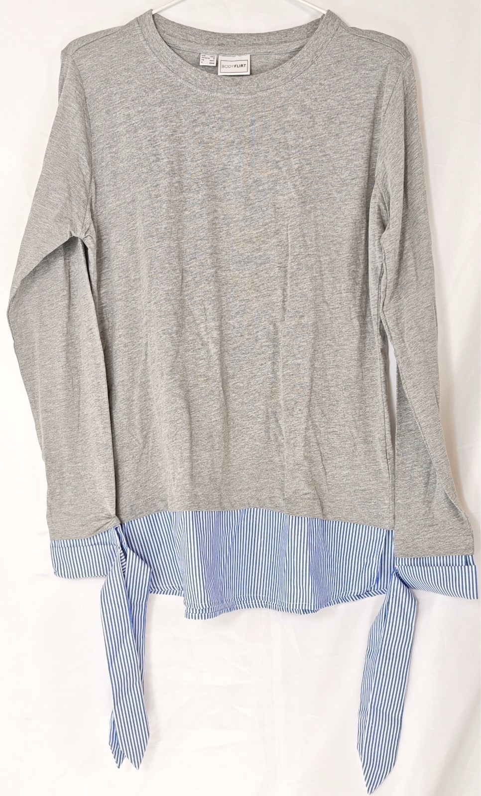 BonPrix Langarmshirt Damen Oberteil Shirt Schleife Gestreift Gr. M Grau