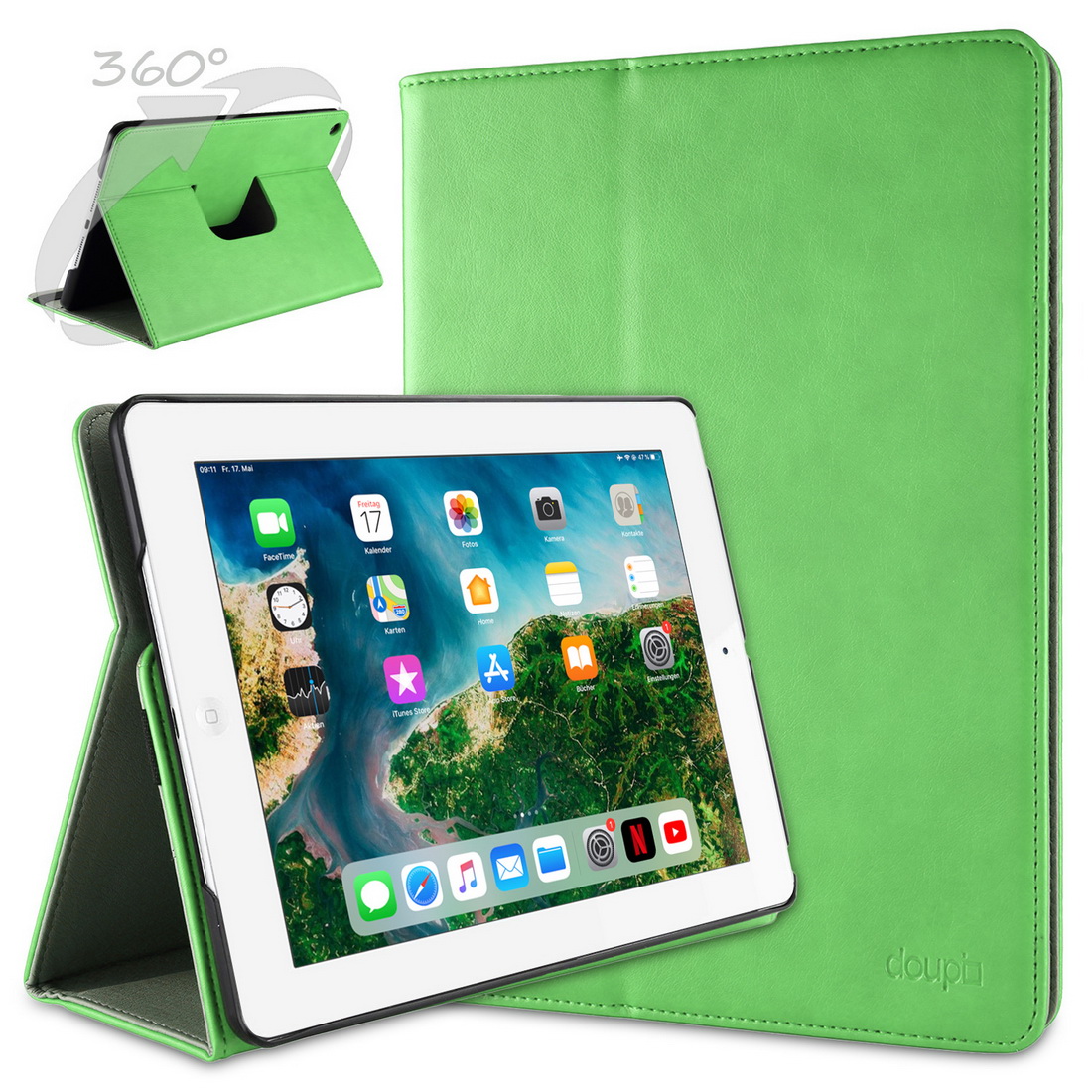 • 360 Grad drehbar! doupi Deluxe Schutzhülle für iPad 2 3 4, Smart Case Sleep / Wake Funktion 360 Grad drehbar Schutz Hülle Ständer Cover Tasche. • Smart Displayschutz mit Sleep- & Wake Funktionen (Cover zu, Display aus. ).