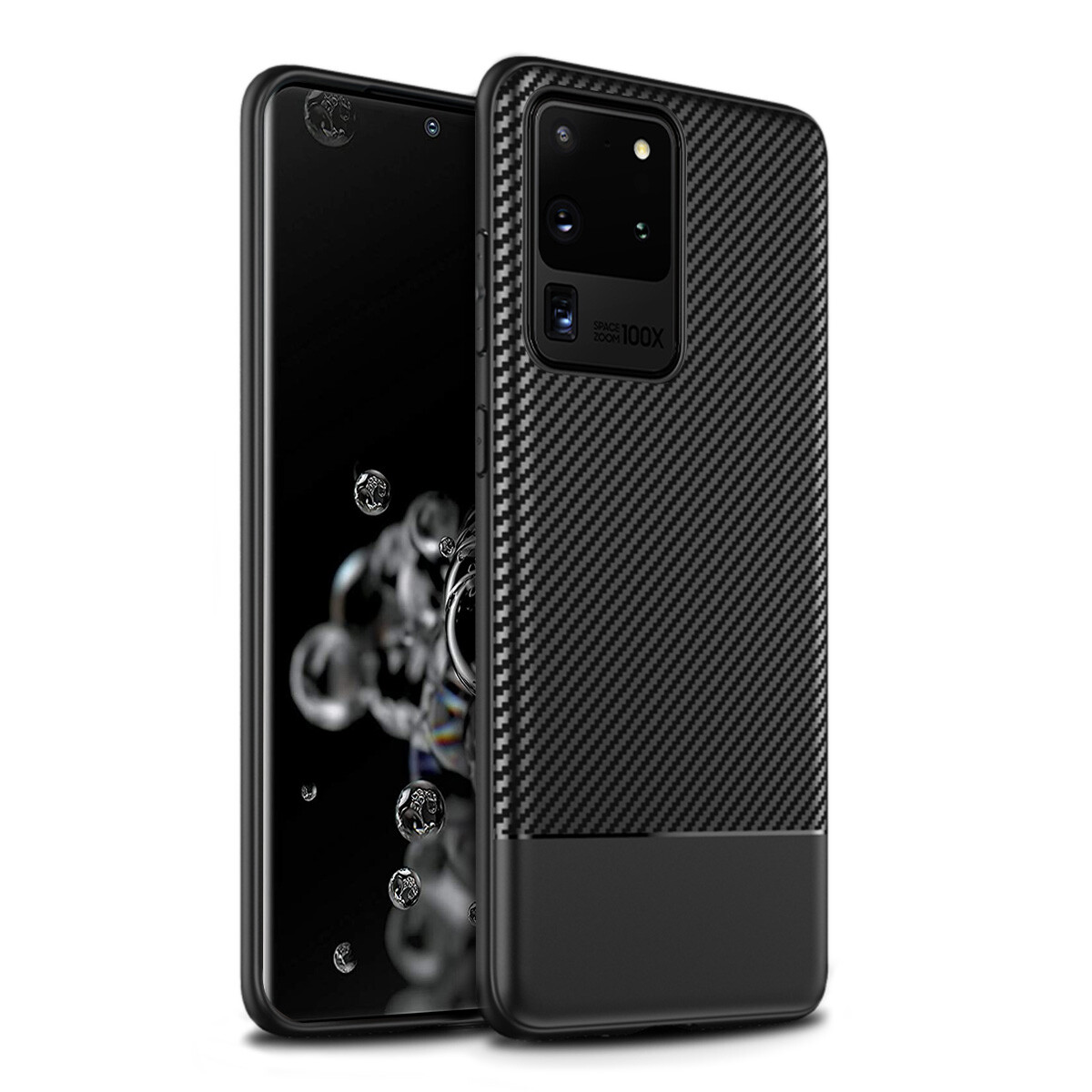 • Kohlefaser Optik Design Schutzhülle! Alle Tasten frei zugänglich, uneingeschränkte Handhabung gewährleistet. Besonders belastbar und kratzerfest dank des hochwertigen TPU / Silikon Material. doupi PerfectFit Hülle für Samsung Galaxy S20 Ultra (S20Ultra), Ultra Dünn TPU Ruschfeste Oberfläche Carbon Fiber Look Cover Bumper Schutz Schale Case Taschenschutz Handyhülle, schwarz.