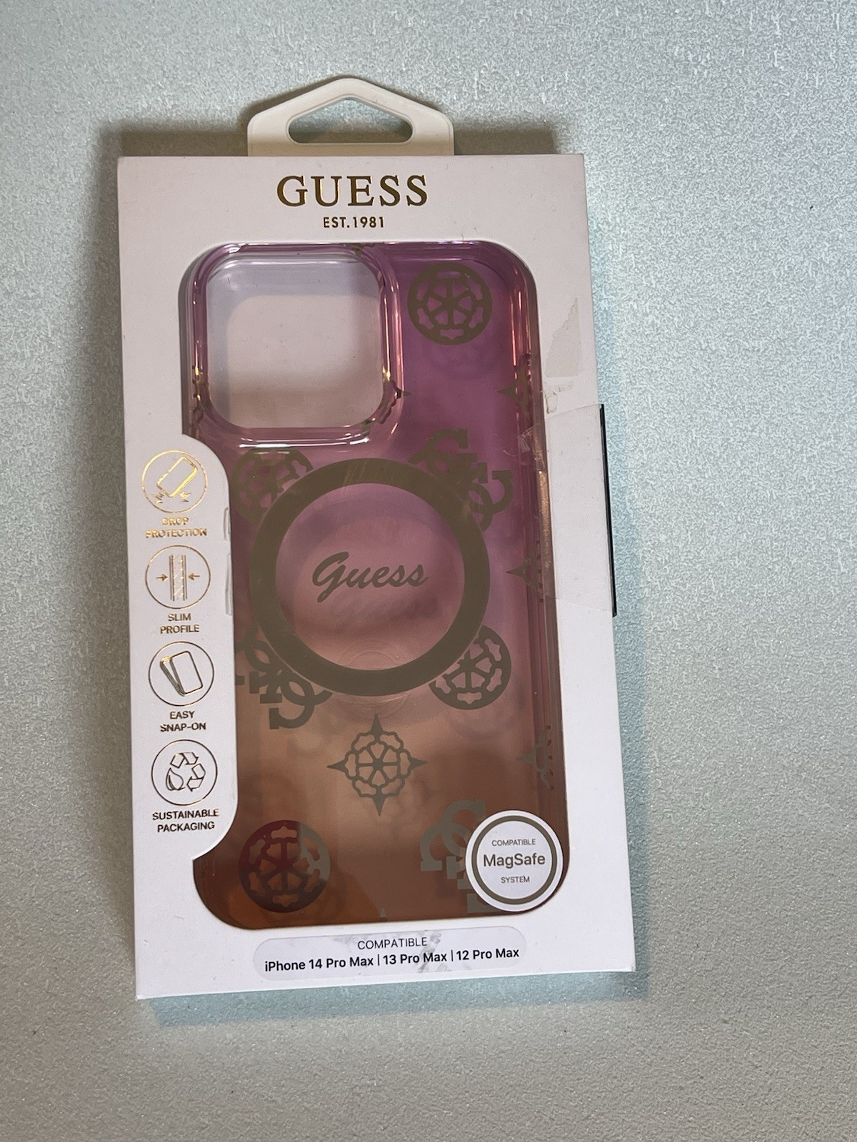 Verleihen Sie Ihrem Apple iPhone 14 Pro Max einen Hauch von Eleganz und Schutz mit der exklusiven GUESS Backcover Schutzhülle in pinkem Gold. Dieses hochwertige Accessoire, gefertigt aus robustem Kunststoff, zeichnet sich durch sein leichtes Design aus und trägt das unverwechselbare Markenlogo sowie einen prägnanten Markenschriftzug in Goldoptik, wodurch es nicht nur schützt, sondern auch einen stilvollen Akzent setzt. Die Hülle ist speziell für die Modelle Apple iPhone 12 Pro Max, Apple iPhone 13 Pro Max und Apple iPhone 14 Pro Max konzipiert und gewährleistet mit ihrem luxuriösen Design und der transparenten Optik, dass Ihre Investition in ein stilvolles Accessoire gerechtfertigt ist. Beachten Sie, dass es sich um B-W