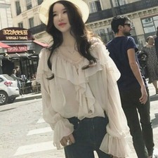 Damen Chiffon T-Shirt Oberteile Rüsche lang Fackel Ärmel/Lolita Rüschen Bluse-/