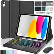 Schutz Hülle mit QWERTZ Tastatur für iPad 7/8/9/10/11. Gen Air M3 M2 Pro 11 2025. Die Tastatur ist mit dem iPad kompatibel, sodass Sie jederzeit wie mit einem Laptop arbeiten können. Die automatische Schlaffunktion der Tastatur kann die Standby-Zeit verlängern, sodass Sie Ihre Sorgen um die Stromversorgung verringern können.