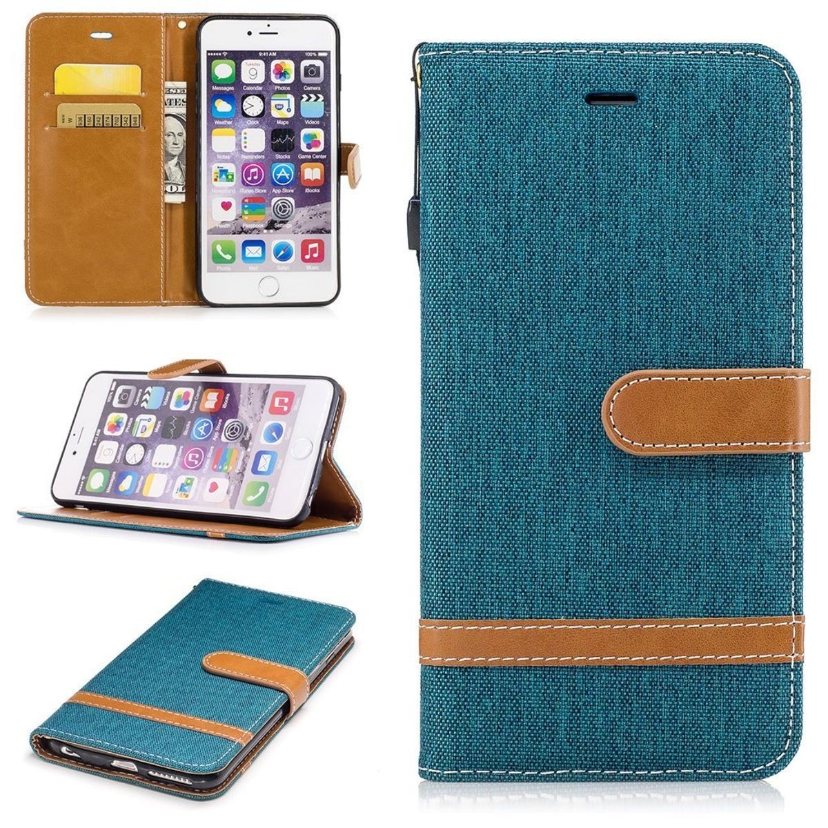 Handy Hülle Schutz Case Jeans Optik Bookstyle Tasche für Apple iPhone 6 / 6s Neu