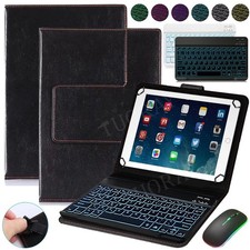QWERTZ Beleuchtet Tastatur Leder Hülle Maus für 9.7-11 Zoll Tablets PC Universal