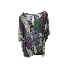 Damen T Shirt Gr L 40/42 bitte Maße beachten weiß mit silber Blumen siehe Bild