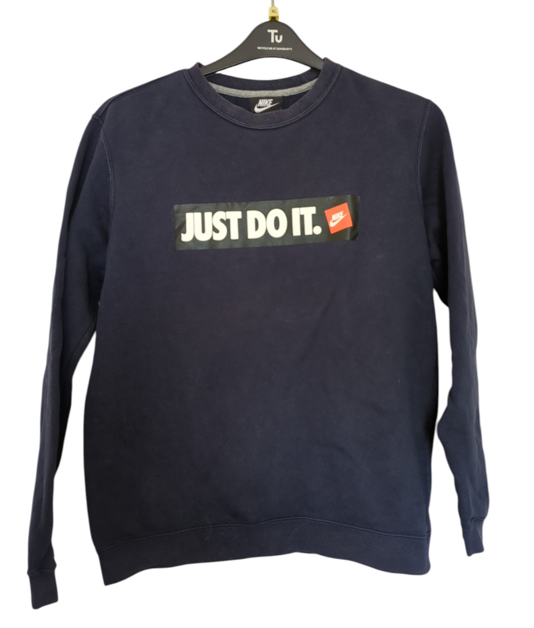 Made from a blend of polyester and cotton jersey fabric, this pullover sweatshirt features a round neckline, long sleeves, and the iconic Nike logo as accents. With a regular fit and size M, this sweatshirt is suitable for all seasons and various activities such as gym training, basketball, and walking.
