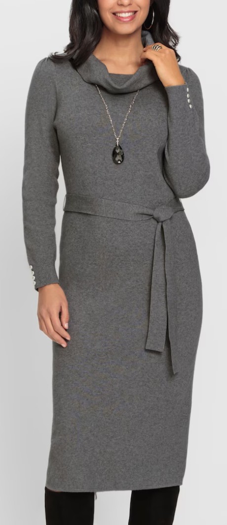 HEINE Damen Strickkleid Rollkragen Kleid Langarm Anthrazit Gr 46 NEU