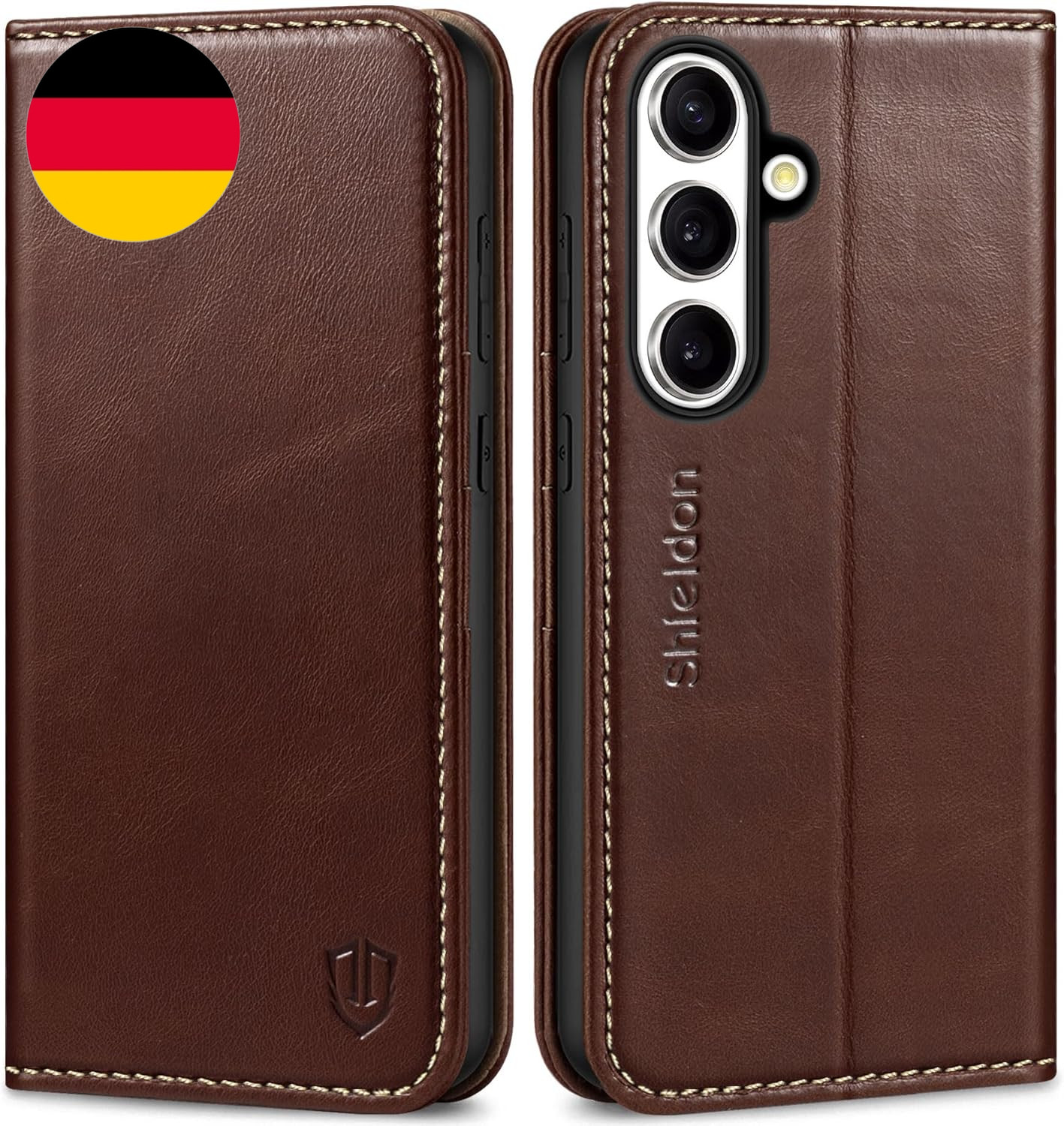 SHIELDON Hülle Für Galaxy S25+ 5G 6,7", Handytasche [Echtleder] [RFID Blocker] [Kartenfach] [Ständer] Stoßfest Magnetisch Cover Etui Schutzhülle Kompatibel Mit Galaxy S25+ plus 2025 - Retro Kaffee. 【Erstklassiges Echtleder & Voller Schutz】Die Echtleder Hülle für das Galaxy S25+ ist aus Ölwachs-Rindsleder + TPU Hülle gefertigt.