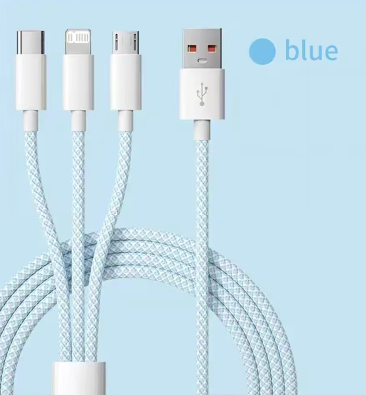 Erleben Sie die praktische Flexibilität mit dem 3in1 Multi PD 66W USB-A Ladekabel, welches sich universell für eine Vielzahl von Geräten eignet – von Apple bis zu Sony Ericsson. Dieses robuste Ladekabel in markantem Blau besteht aus langlebigem Nylon und bietet dank der schnellen Ladung über USB-C sowie Micro-USB-Anschluss vielfältige Konnektivitätsoptionen. Mit einer bequemen Kabellänge von 1,2 Metern und drei Anschlüssen ist dieses universelle Kabel die ideale Lösung für den mobilen Alltag. Kompatibel mit führenden Marken wie Apple, Google, Huawei, OnePlus, OPPO, Samsung und Sony, stellt es sicher, dass Sie für eine breite Palette von Smartphones und Tablets stets bereit sind.