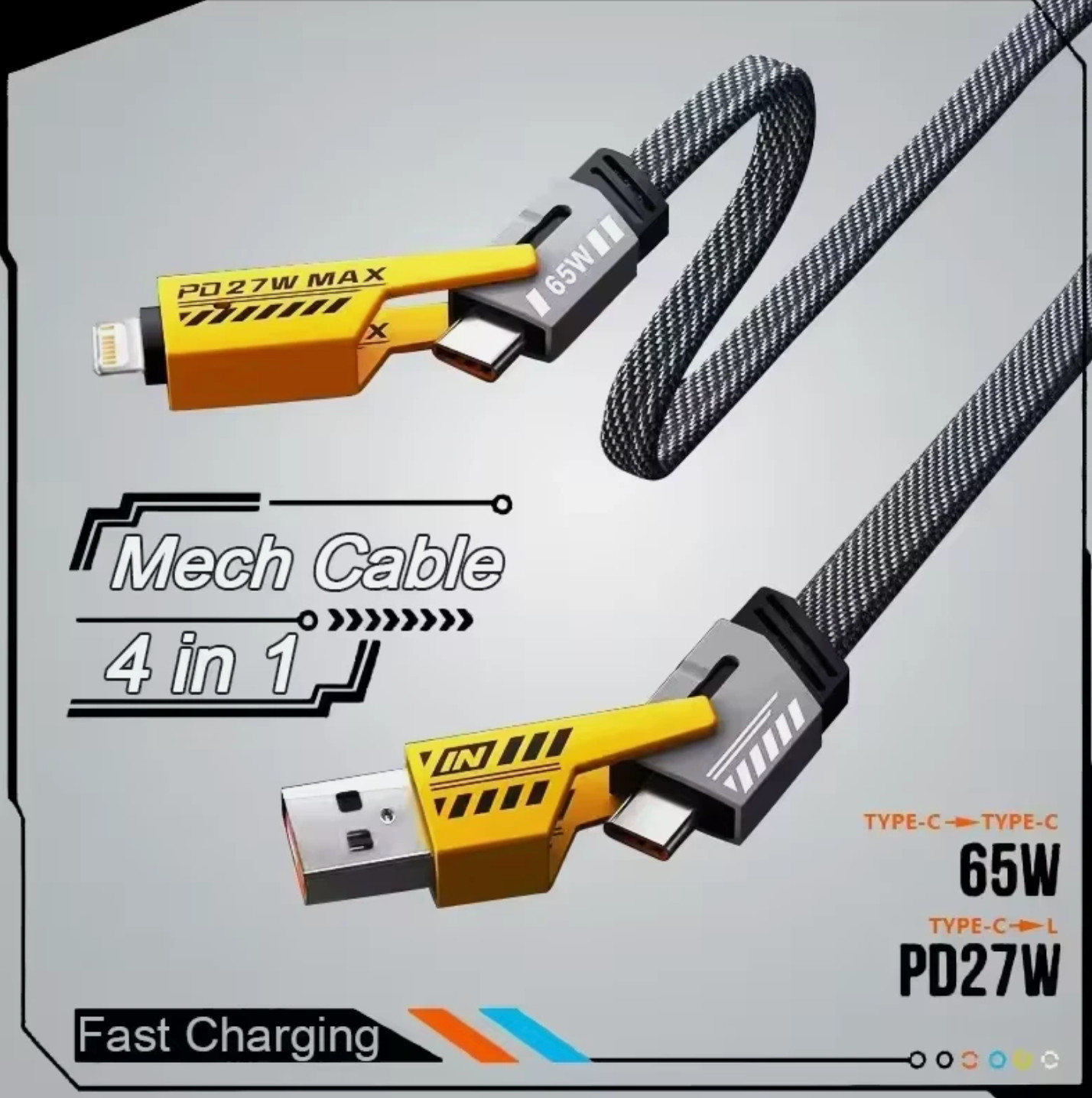 USB C Schnell Ladekabel Kabel 65W 4in1 1M Ladekabel für Samsung Xiaomi iPhone DE