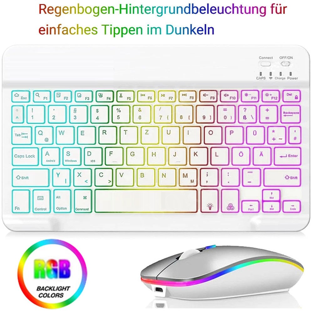 QWERTZ Beleuchtete Tastatur Maus für Lenovo Tab M11 M10/Plus/HD FHD P11/10 K10