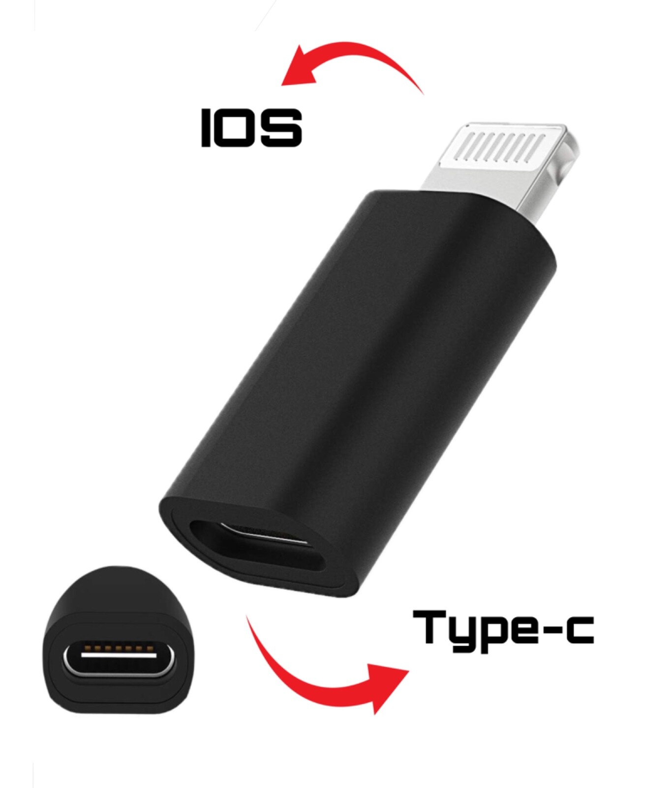 1x ios Stecker auf USB Type C Buchse Adapter in Gold Farbe. Zudem versetzt dieser Adapter Ihr Smartphone oder Tablet in einen USB- Host Modus (PLUG & PLAY), mit dem Sie kompatibles USB Zubehör verbinden können.