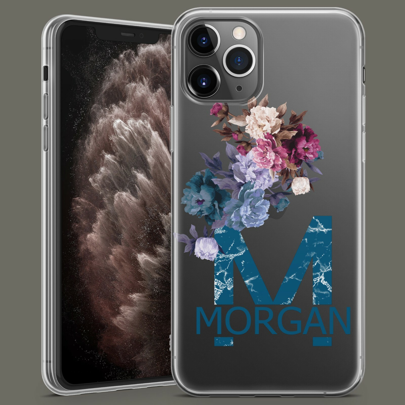 Personalisierte Name Gel Blumen-Marmor-Telefonhülle für iPhone 16 15 14 13 12+
