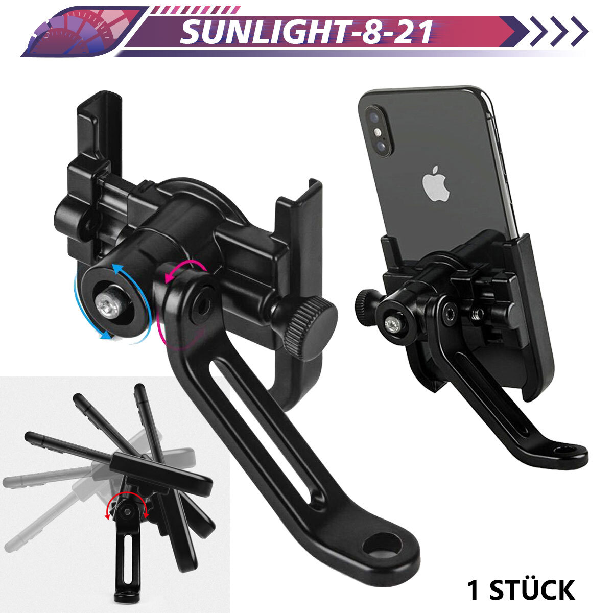 Bei der Verarbeitung der Halterung wurde auf eine hohe Qualität geachtet. Oder einfach zwischen Lenker und Rückspiegel die Halterung installieren. Das Anschrauben der Halterung sorgt für einen sichereren Halt.