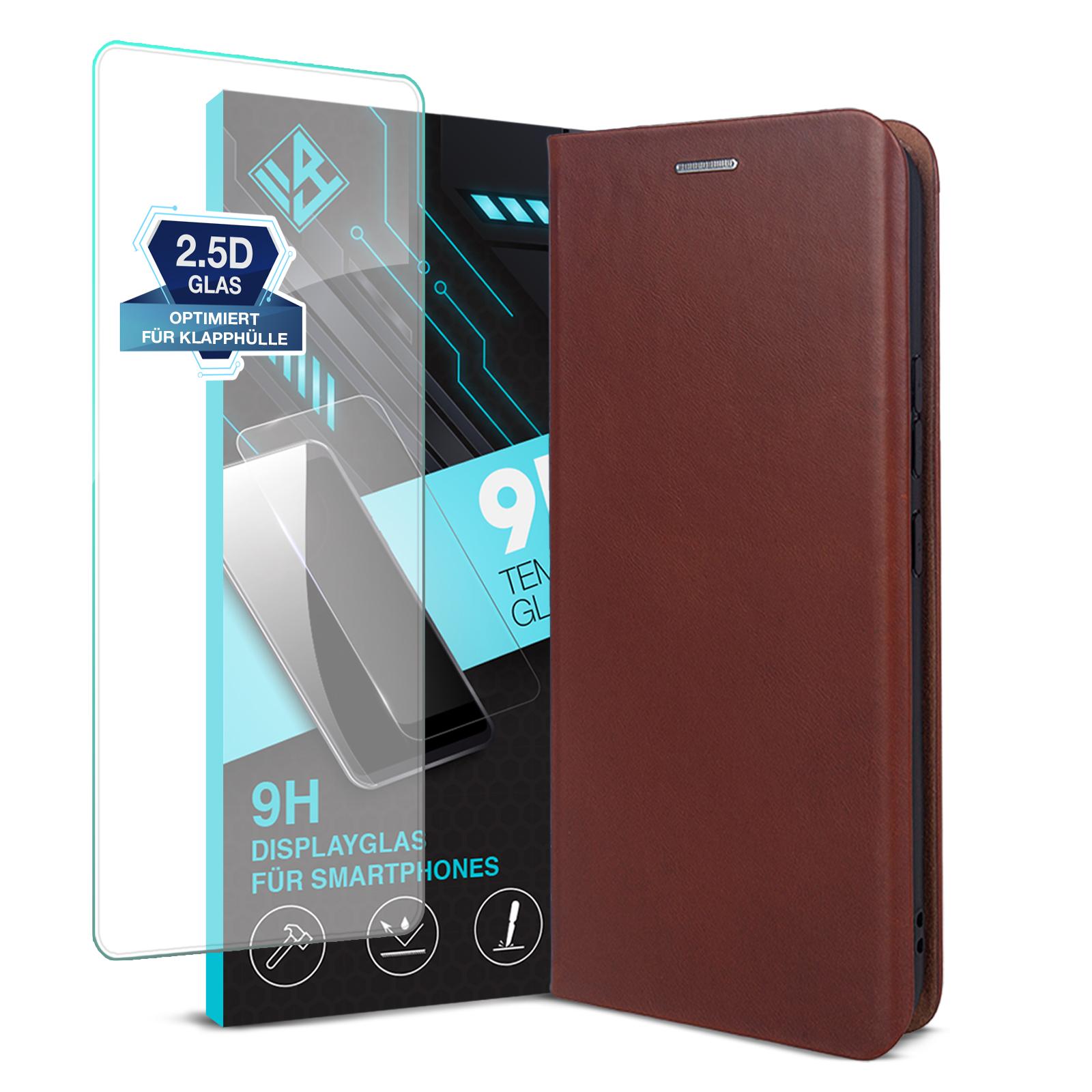 Hochwertige Klapphülle aus Leder wahweise mit 9H Displayglas - Exakte Passgenauigkeit durch verstärkte Kunststoffschale (Schwarz) - Integrierte RFID Schutzschicht - Smartes Design mit Kartenfach - Praktische Smartstand-Funktion - Schneller Blitzversand und engagierter Kundendienst an 7 Tagen die Woche!.
