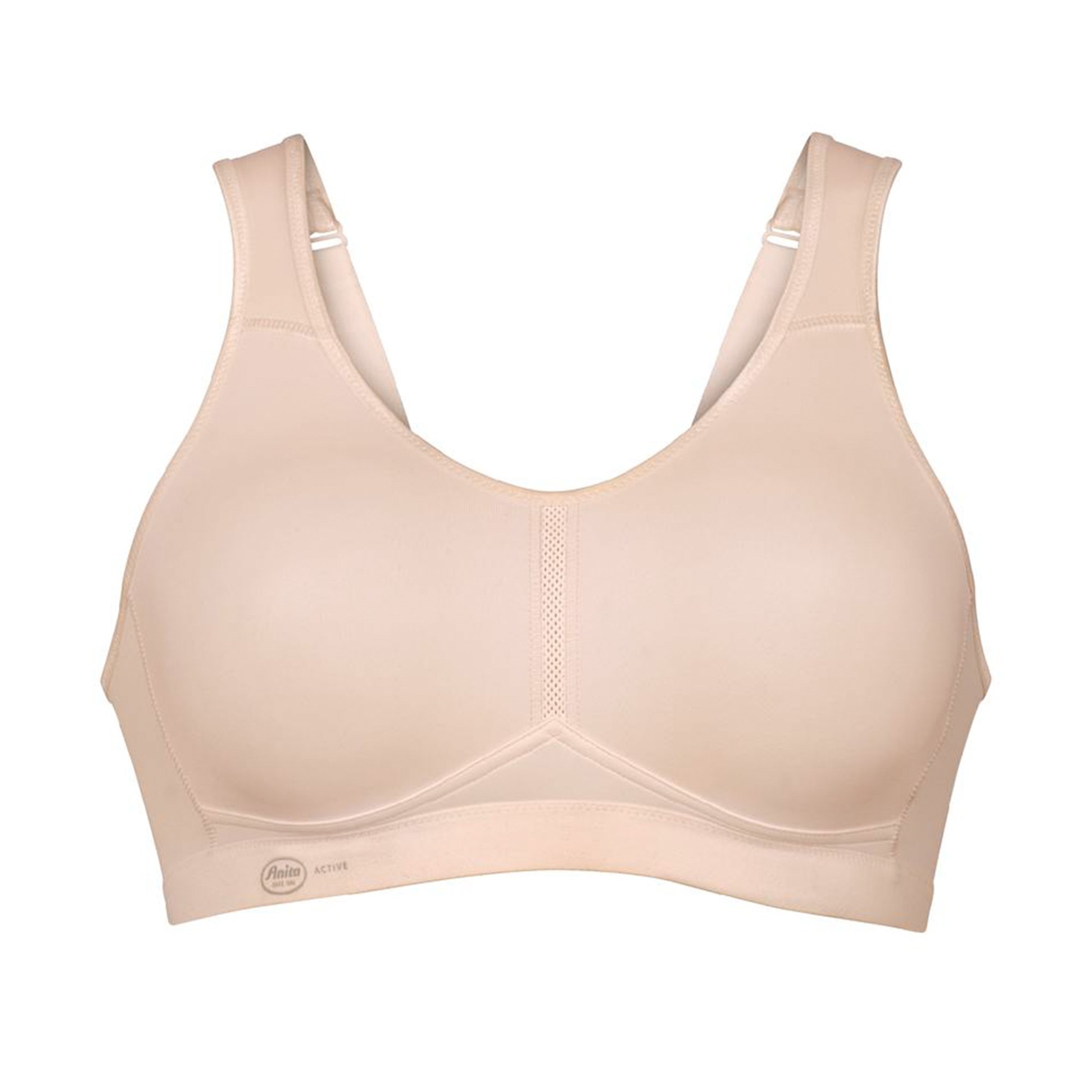 Ergonomisch geformte, gepolsterte Träger entlasten die Schulter. Leichte, atmungsaktive Mikrofaser. Ideal für Sportarten mit mittlerer Bewegungsintensivität. Softes, flaches Unterbrustband stützt und gibt Halt.