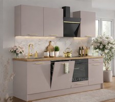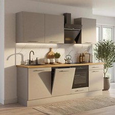 Küchenzeile Küche Einbauküche 2,4m - modern Eiche Weiss AB LAGER erweiterbar NEU