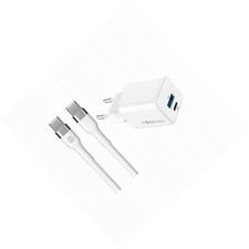 Schnelles GaN PD QC Netzteil 20W mit 1m USB-C Kabel. Dieses kompakte Ladegerät nutzt die innovative GaN-Technologie für ultraschnelles und effizientes Laden. Mit einem USB-C und einem USB-A Anschluss können zwei Geräte gleichzeitig geladen werden. Klein und leicht, passt es in jede Tasche und ist somit ideal für unterwegs. Die moderne GaN-Technologie sorgt für effektives und sicheres Laden. - 20W Schnellladung (PD + QC) - 2 Ausgänge: 1x USB-C, 1x USB-A - Inklusive 1m USB-C zu USB-C Kabel - Kompaktes Design mit GaN-Technologie - Ideal für Mobilgeräte