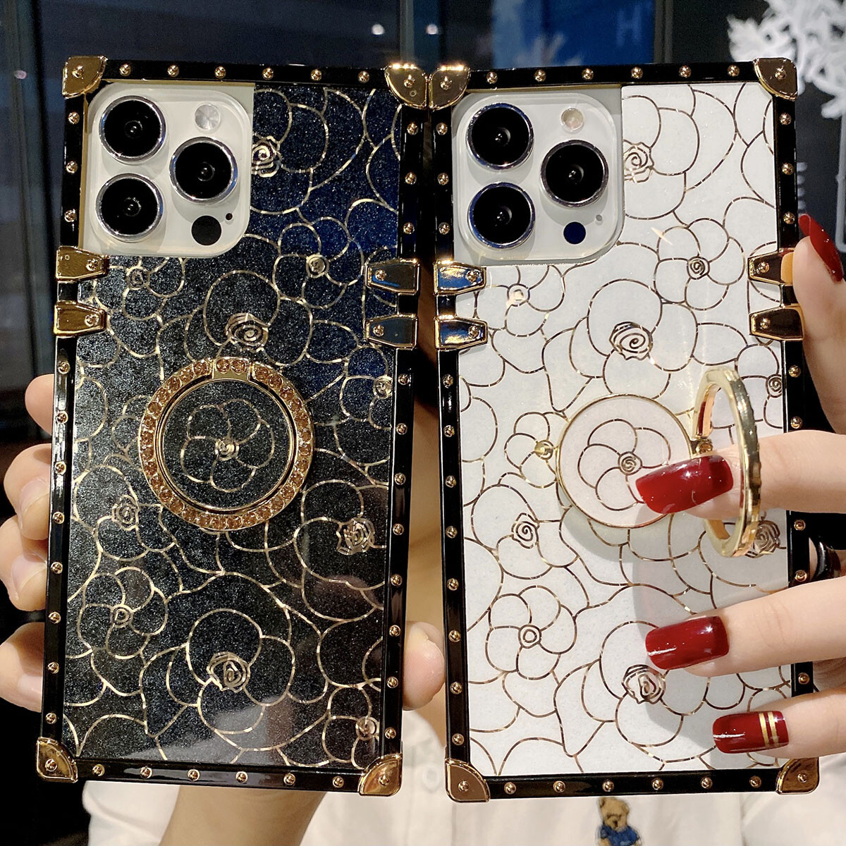 Glitzer Blume Schutzhülle Handy Tasche Silikon Case mit Diamant Halterung Ring