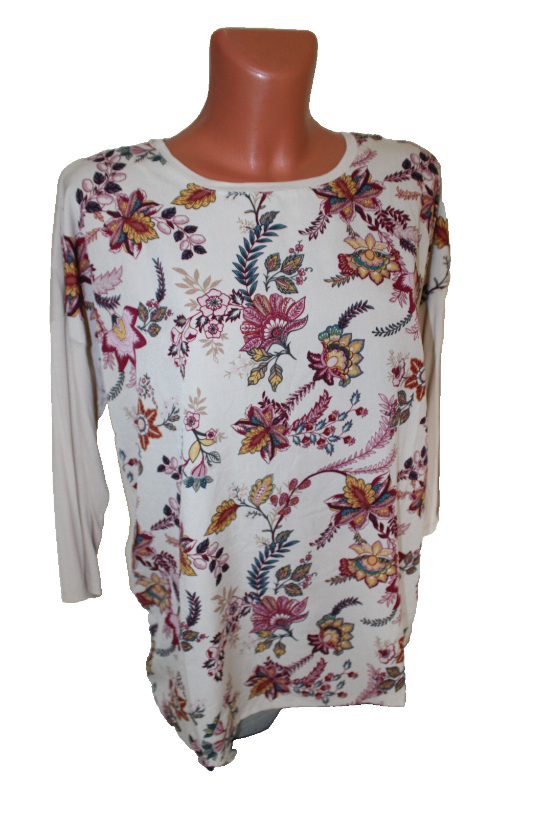 Bluse L 44 Blusenshirt 3/4-Arm Shirt Blumen Bluse T-Shirt beige Damen