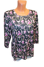 Shirt L 44 T-Shirt 3/4-Arm schwarz rot angenähter Cardigan Damen Baumwolle